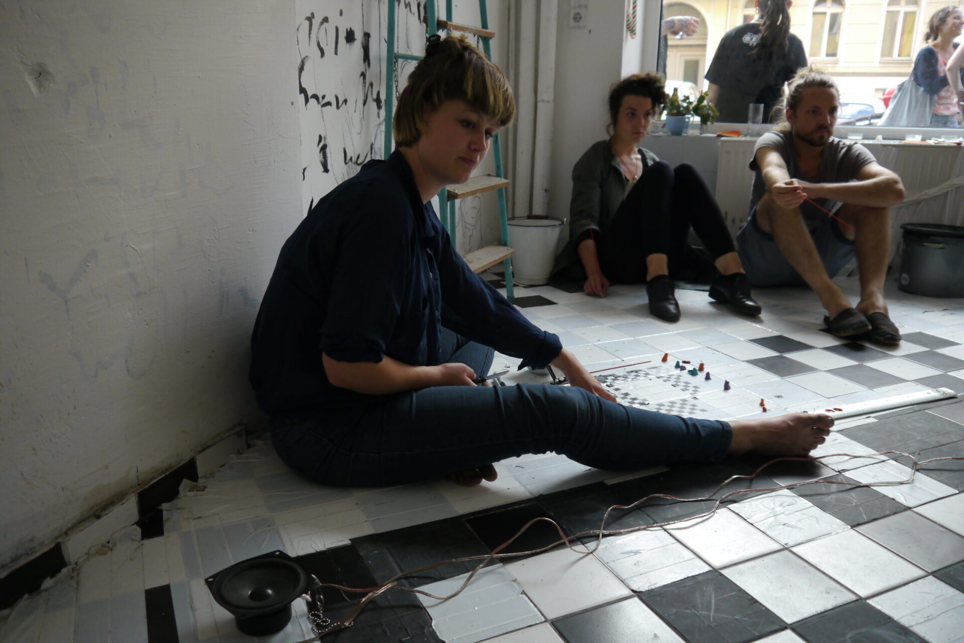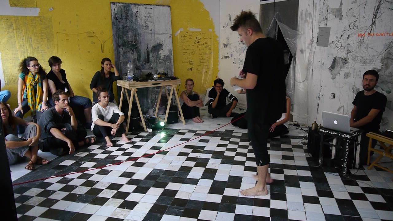 Working in small groups, and as an entire group, the artists will propose, conceive, and develop scores, structures, and performance material; addressing the topics of: collaboration and co-elaboration (or simultaneity).