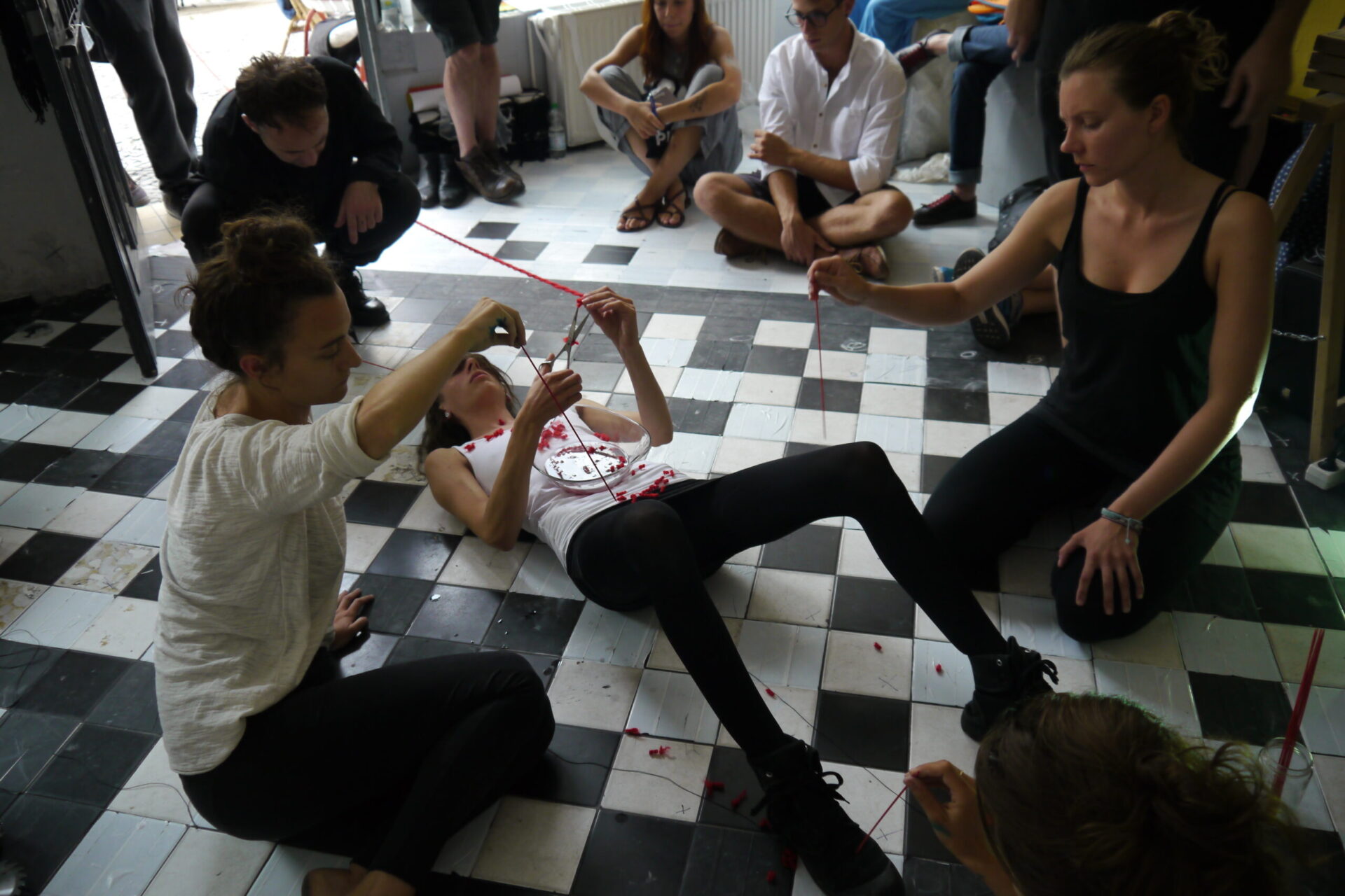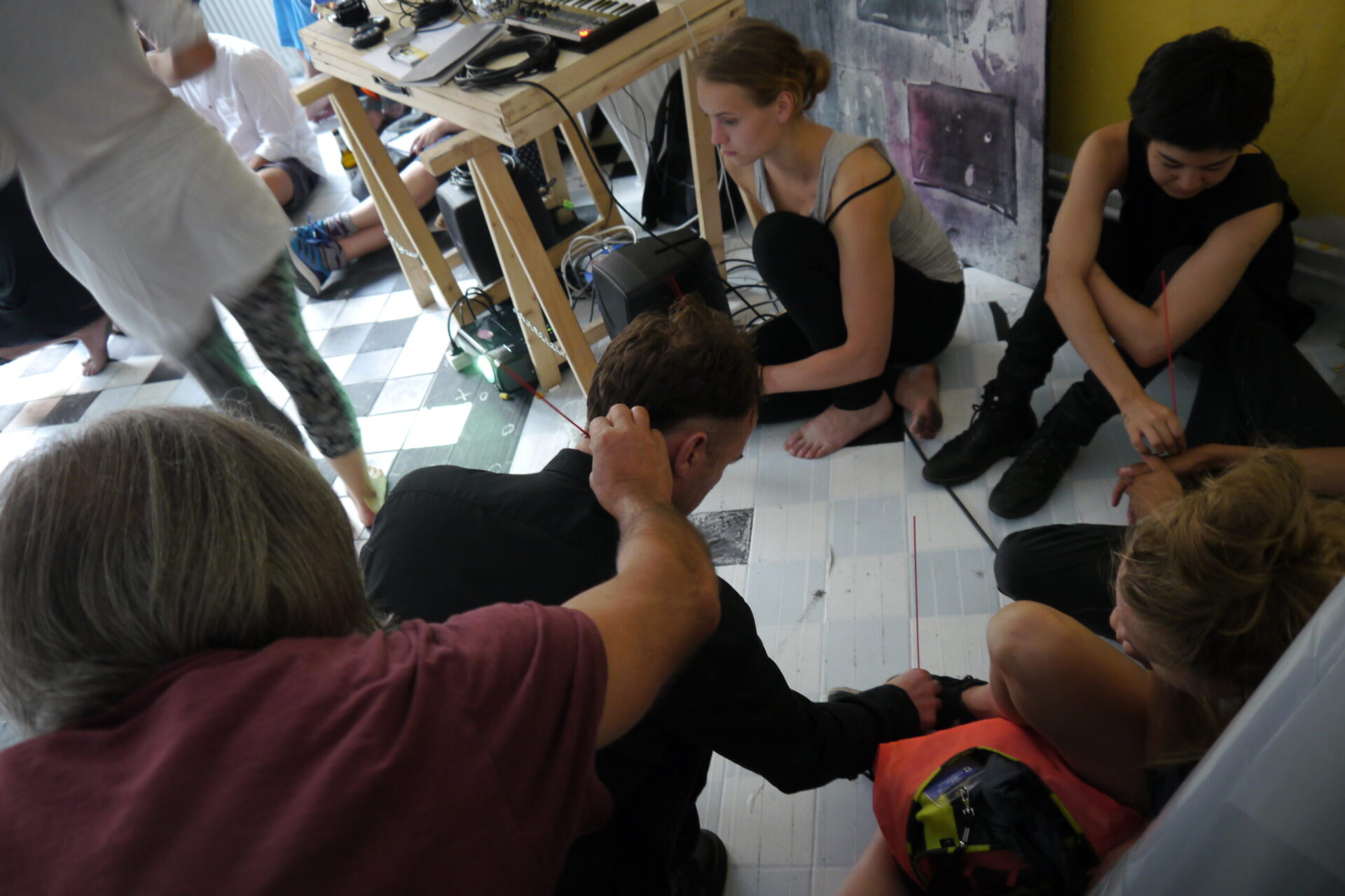 Co- (lab) / 9 is a one-day group intensive, comprised of artists of various disciplines including: performance, dance, movement, sound, and visual arts.