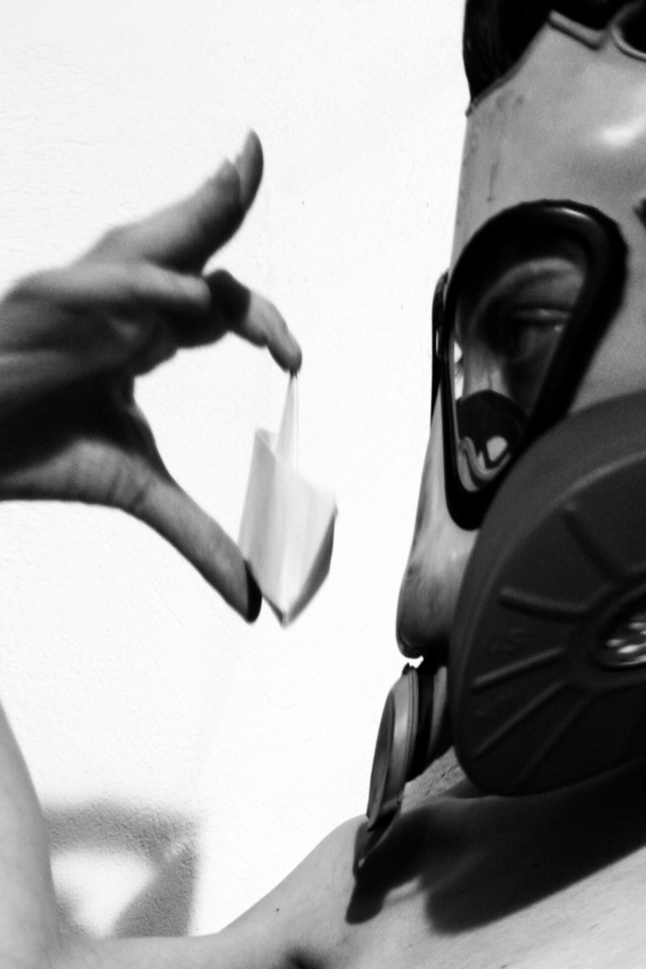 Photo performance by Marta Lodola. Materials: cigarette, origami boat.