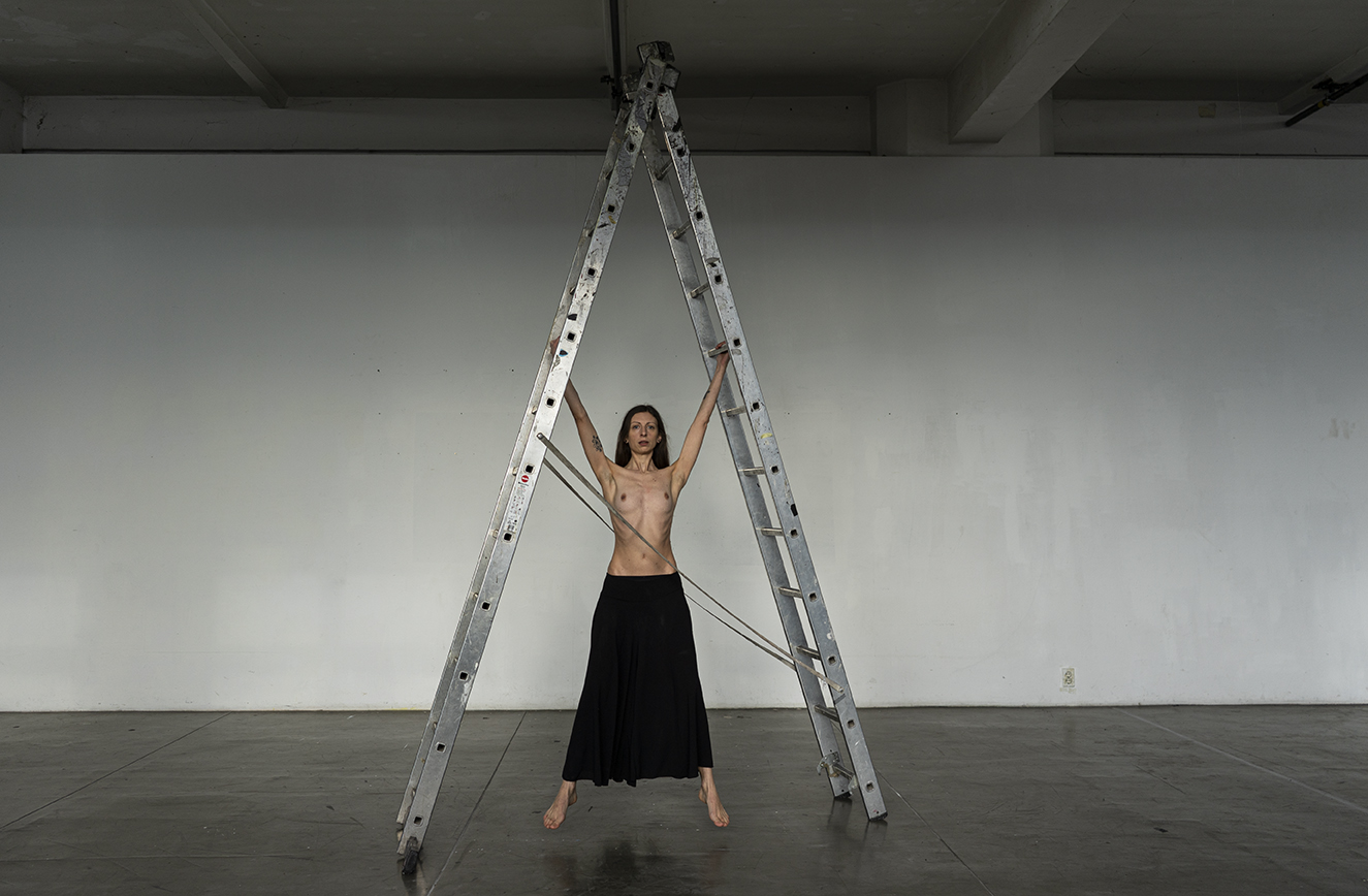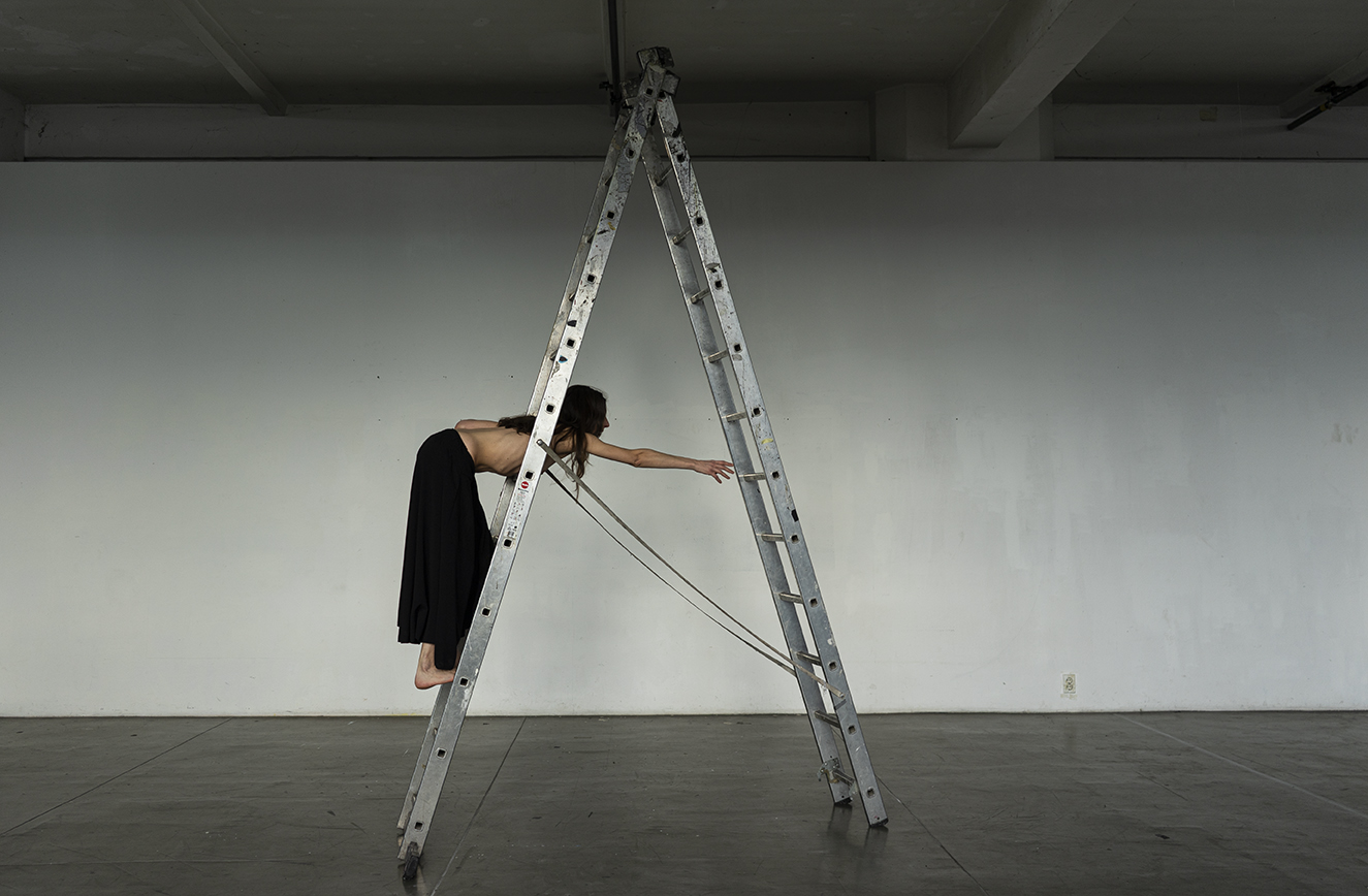 Video and self release photography by Marta Lodola, Flutgraben e V. Materials: metal ladder.