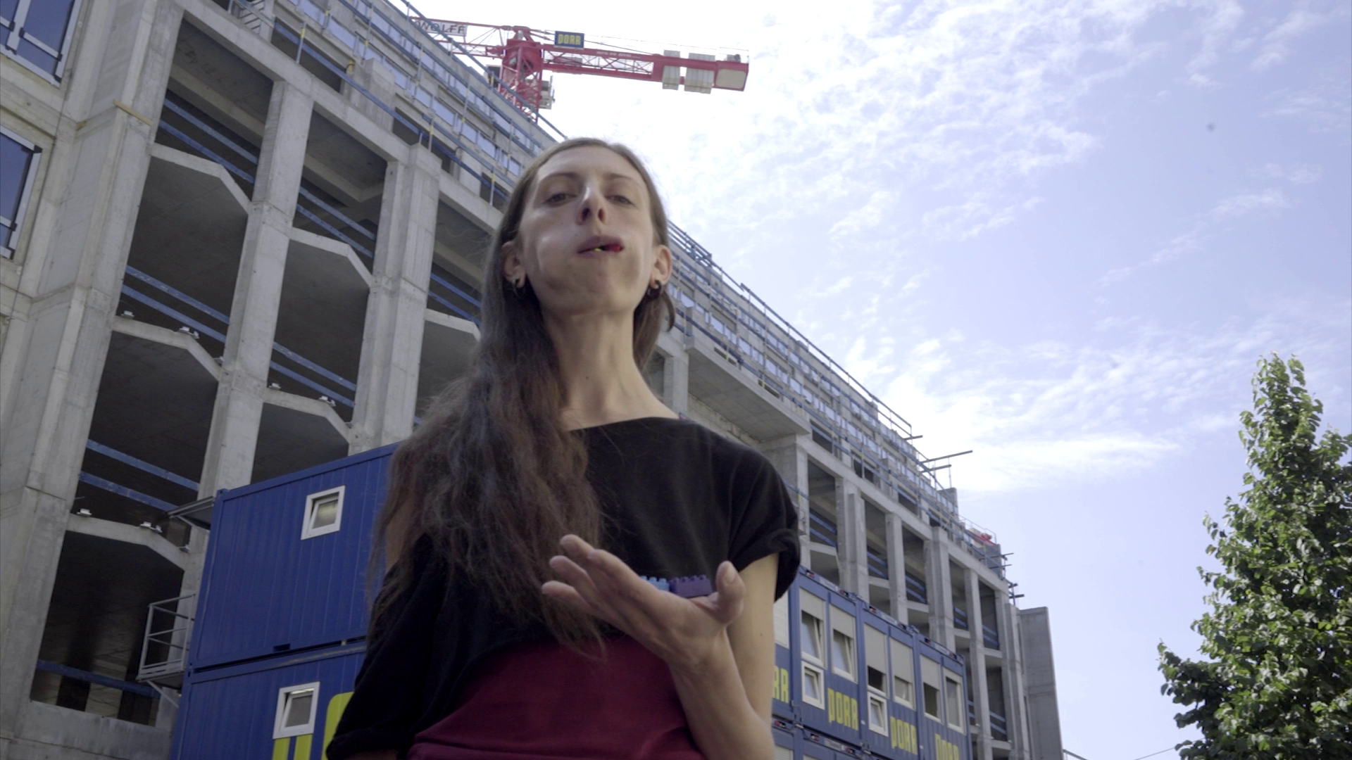My act takes place in the Cuvrystraße Spree front. The background reveals one of the two facades in construction. With this performance I want to criticize the way urban speculation has been literally “chewing into” Berlin for the past years. Because of the gentrification, most of the city’s spaces have become exclusively accessible only to people who hold a high social status or to business-oriented groups. Gradually, most of the collective and self-organized spaces are subject to eviction and, furthermore, the city is losing many of its art studios, which were formerly considered one of Berlin’s significant highlights. Instead of renting those spaces for cultural purposes, it seems much easier and profitable to sell them for 5000 euro per square meters. It is precisely in this place, which tells us the story of how the “chewing machine” overpowered the will of citizens, I protested with my performance.