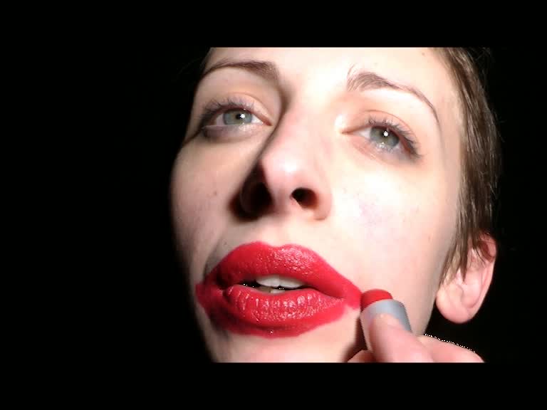 Video performance by Marta Lodola, Color Stereo 3:18 min. Camera Valerio Ambiveri. Material red lipstick.