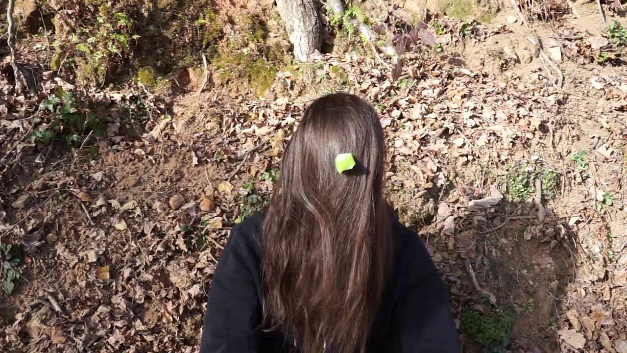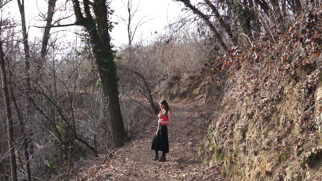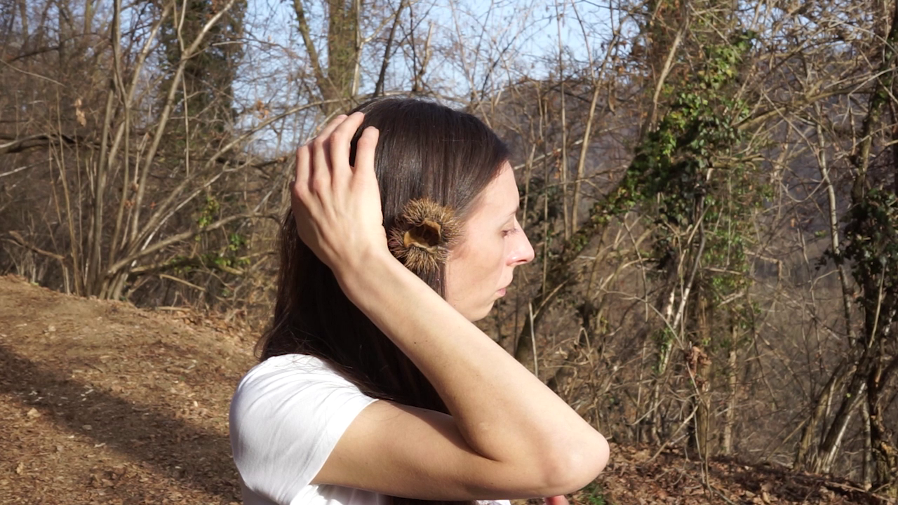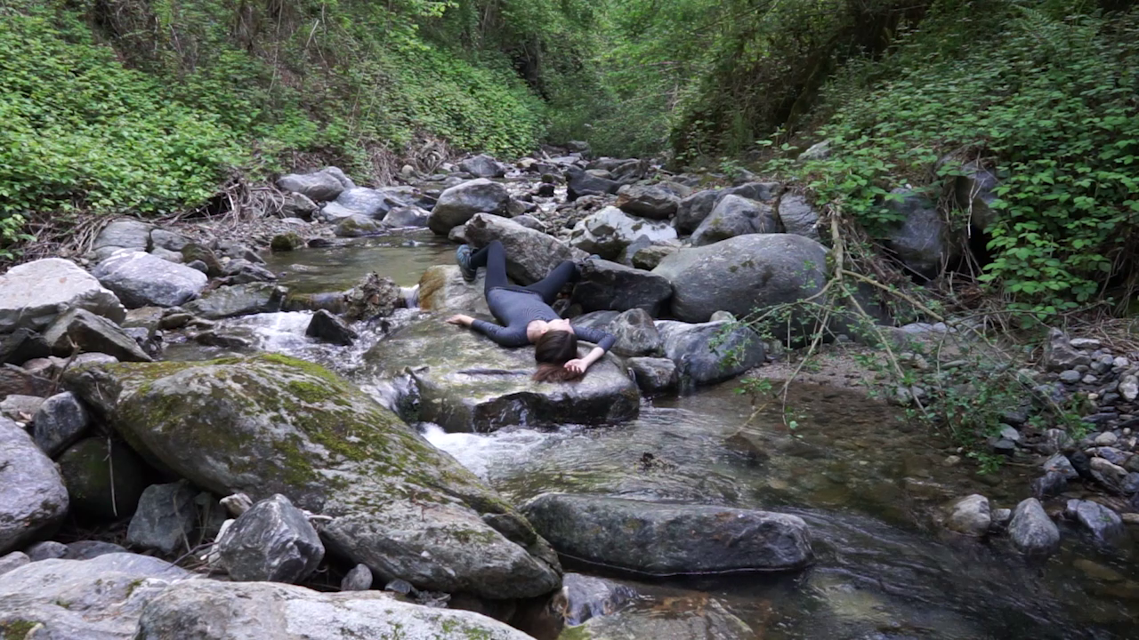 Video performance Marta Lodola, duration 17:23 min, Stereo. Materials: tree branches, husk of chestnut, river’s rocks, stillness