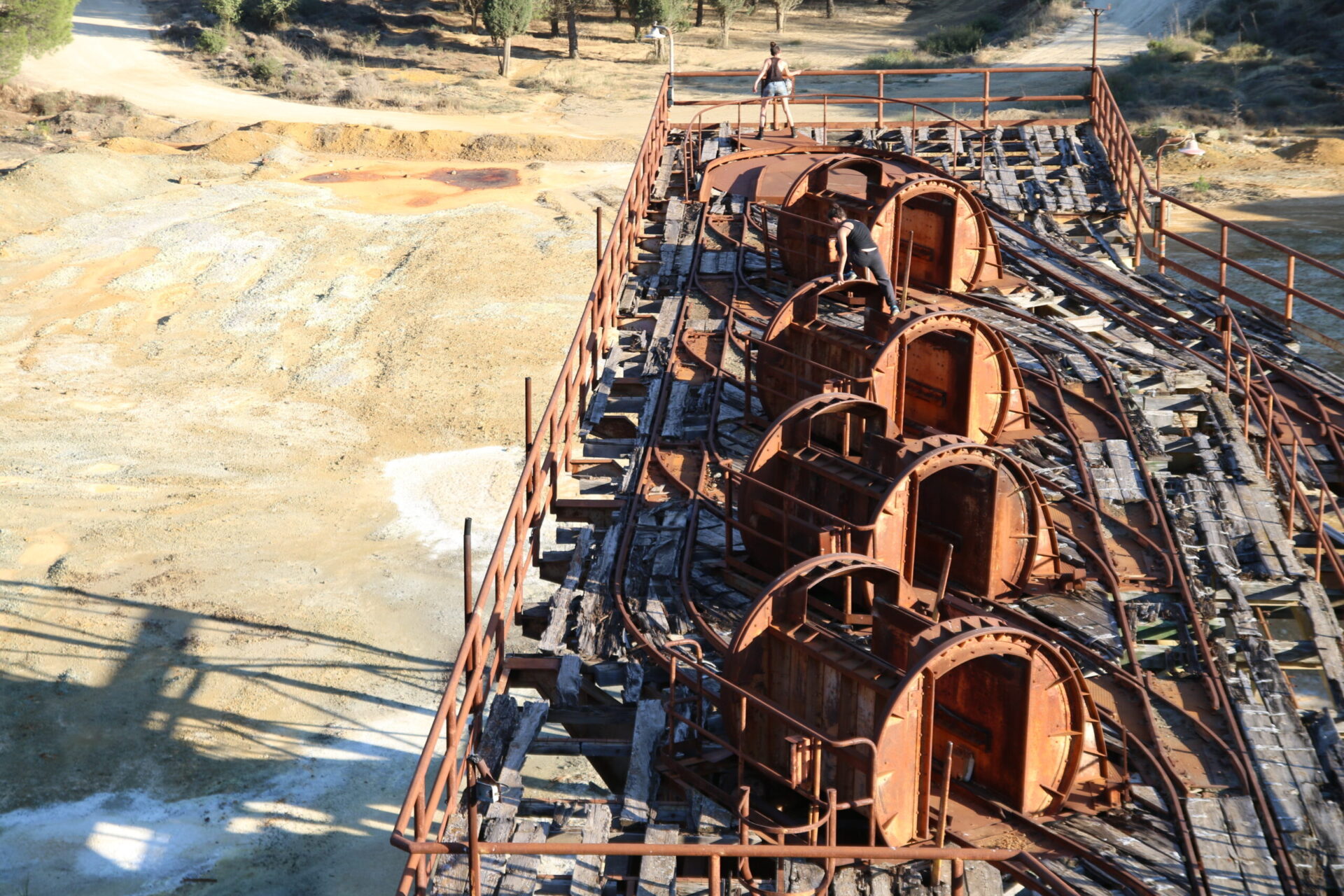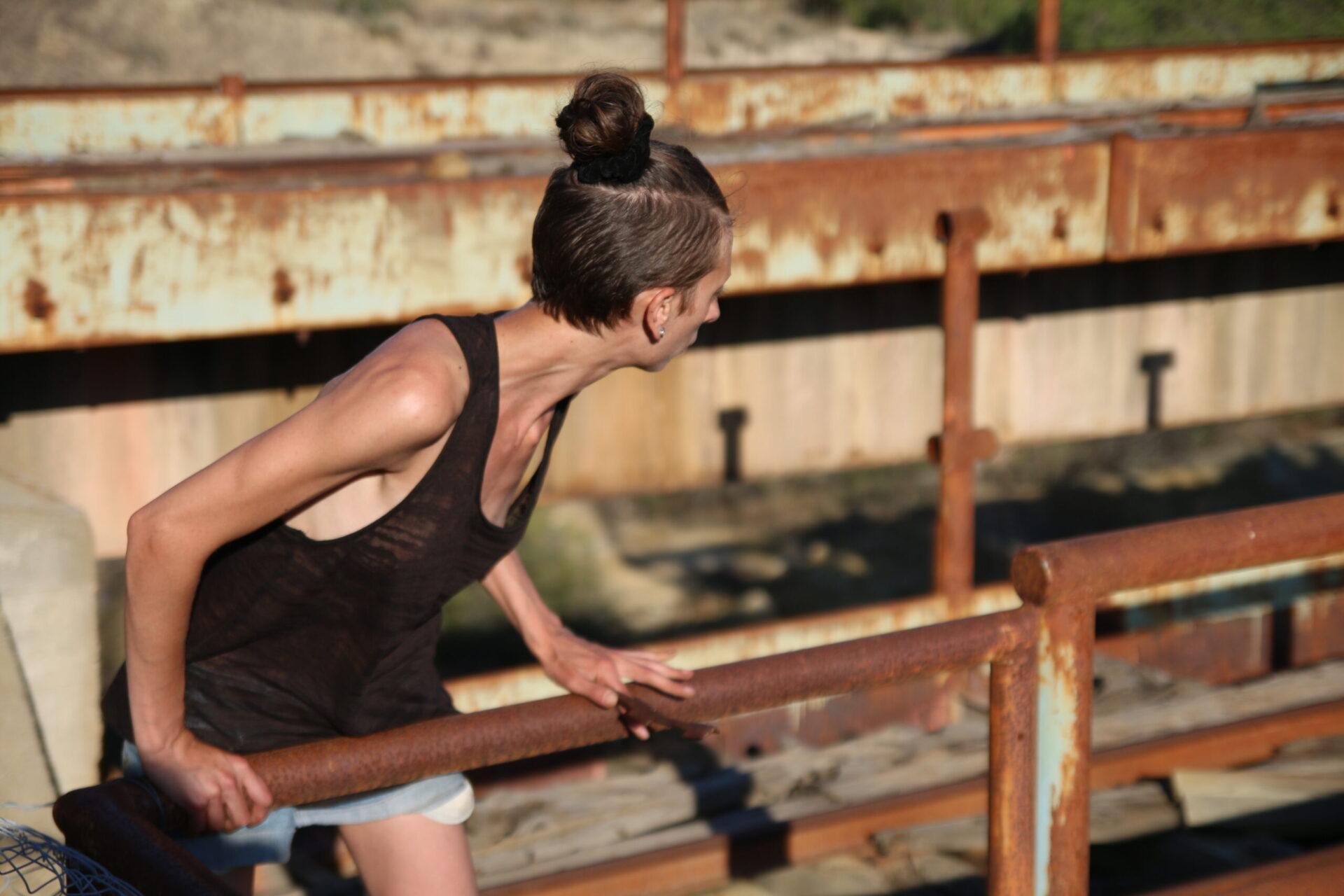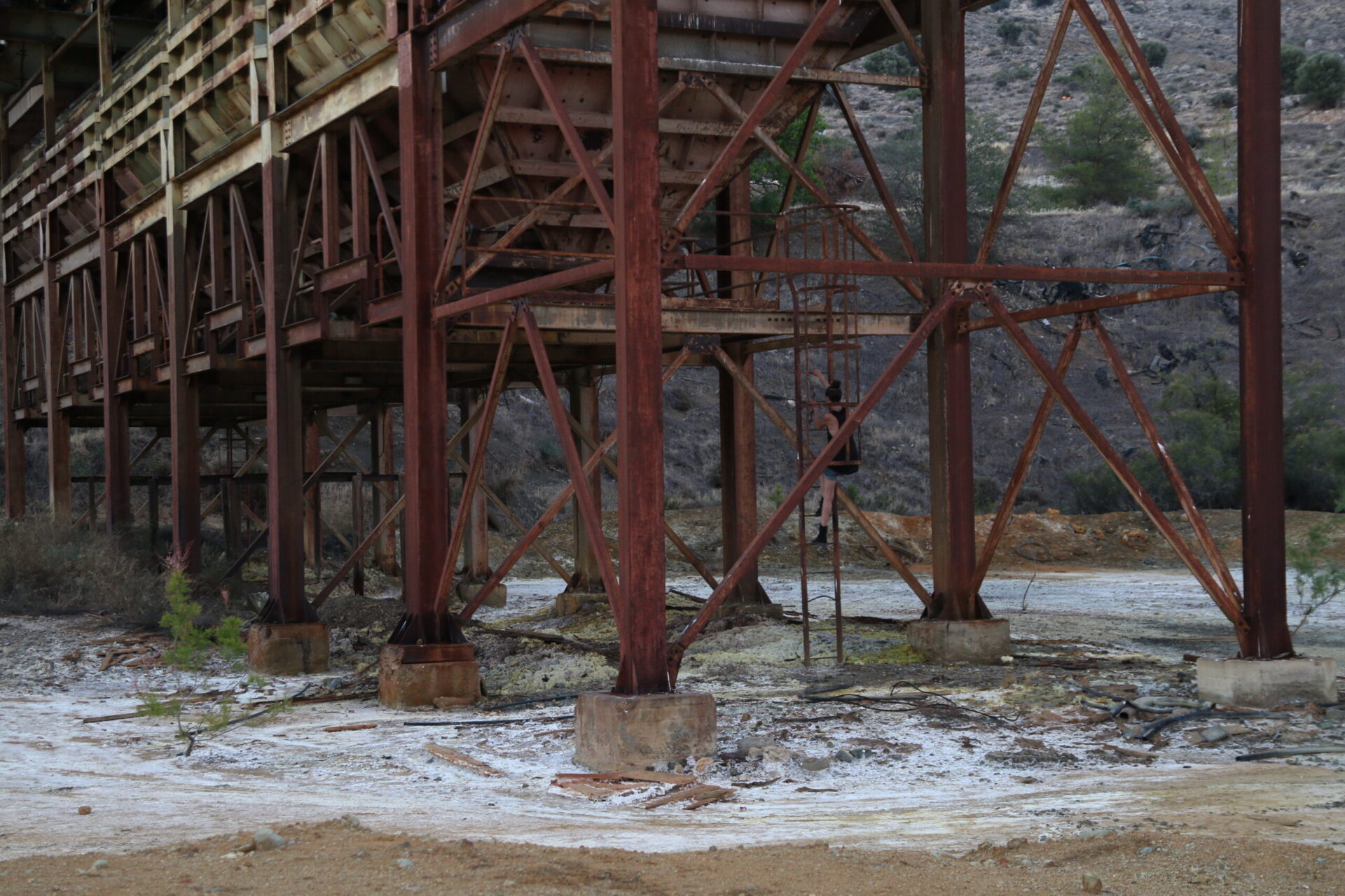 In a site-specific action held in an old mine with a huge metal structure, I find a metal bar that I use for the entire duration of the performance. I explore the metal structure sliding the metal bar over a railing, until I reach the furthest point, where I start hitting a bell that was part of the machinery, while I scream “Work is everything, work is nothing”. Repetition, exhaustion and overcoming fear are the main concepts of this work.
